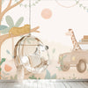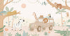 Dit safari behang met jeep en dieren is ideaal voor kinderen die houden van avontuur, natuur en dieren. De gedetailleerde illustraties in warme, natuurlijke kleuren brengen direct een gezellige, avontuurlijke sfeer in de kinderkamer.
