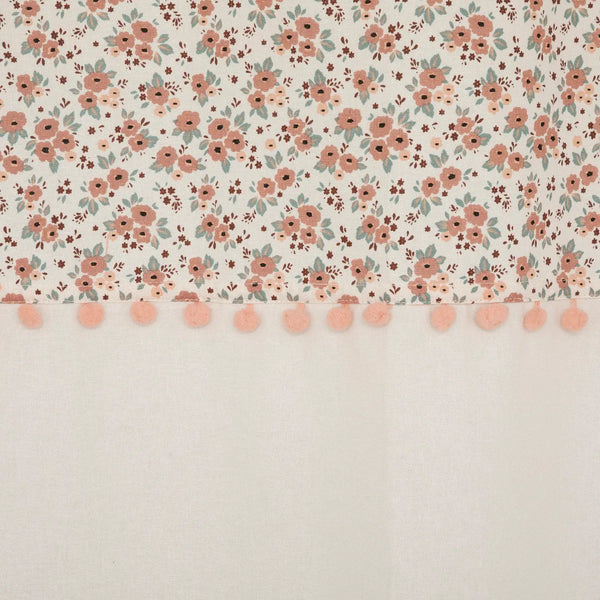Dit gordijn is gemaakt van een effen katoenen voile en is bovenaan afgewerkt met een brede katoenen band met bloemmotieven. Metalen oogjes maken het gemakkelijk om op een roede te schuiven en in de wasmachine te wassen. Het is ideaal om privacy in een slaapkamer te brengen.