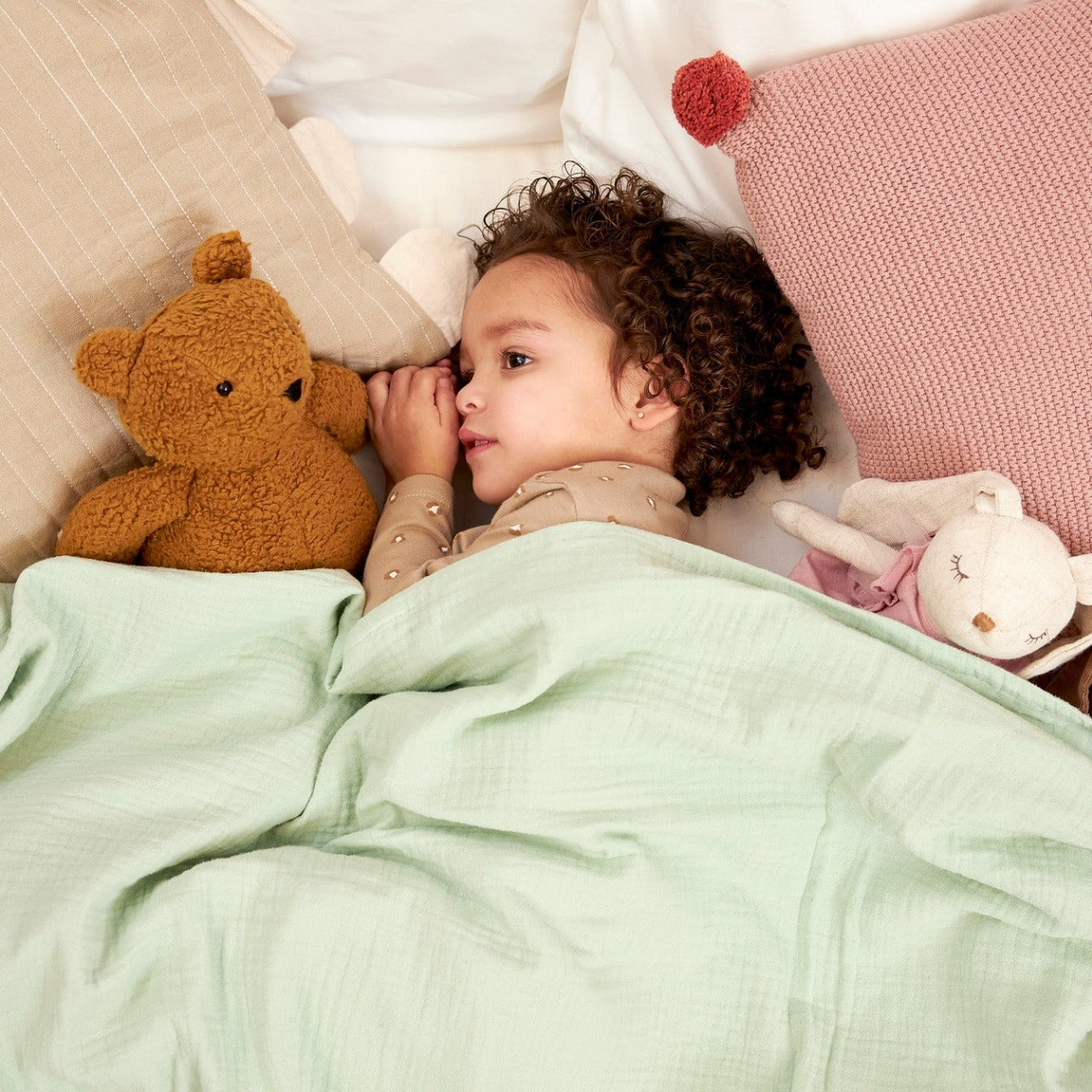 Doordat de deken gemaakt is van 100% pre-washed hydrofiel katoen geniet je van een comfortabele en droge nachtrust. Dit natuurlijke materiaal ademt goed en neemt vocht uitstekend op. Hierdoor is de deken zelfs te gebruiken bij de warmste nachten. Een ander voordeel is dat de stof heerlijk zacht aanvoelt. De deken is verkrijgbaar in de maat 140x200 cm (1-persoons bed), maar ook in kleinere maten. Door deze afmeting kan je er ook makkelijk een dekbedovertrek omheen doen om de deken langer schoon te houden, maar zeg nou zelf, met zo’n zachte stof is het wel heel verleidelijk om dat niet te doen!