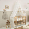 Deze prachtige klamboe Plume brengt een chique, klassieke sfeer in de slaapkamer van je kind. Dankzij de subtiele, geborduurde stipjes creëert de klamboe een elegant, sfeervol accent boven het bed. De klamboe is niet alleen mooi, maar biedt ook een extra geborgen gevoel voor je kindje. De klamboe staat niet alleen prachtig bij een wiegje of ledikant, maar ook een peuterbed, juniorbed of eenpersoonsbed wordt in één klap betoverend mooi dankzij deze klamboe. De klamboe wordt geleverd zonder piekstok.