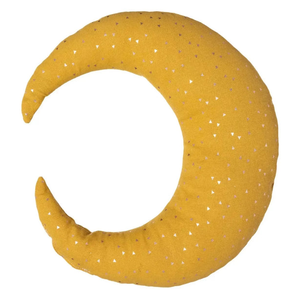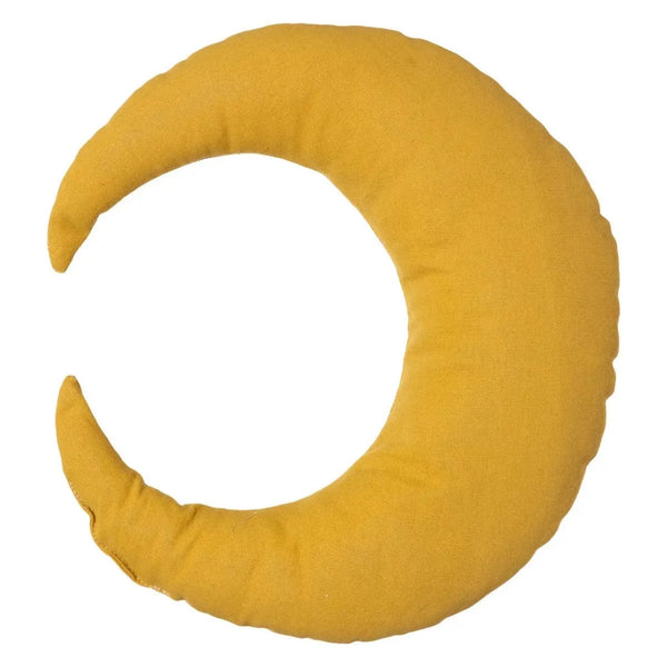 Een mooi maan kussen in de kleur oker. Achterkant van het kussen is egaal oker.