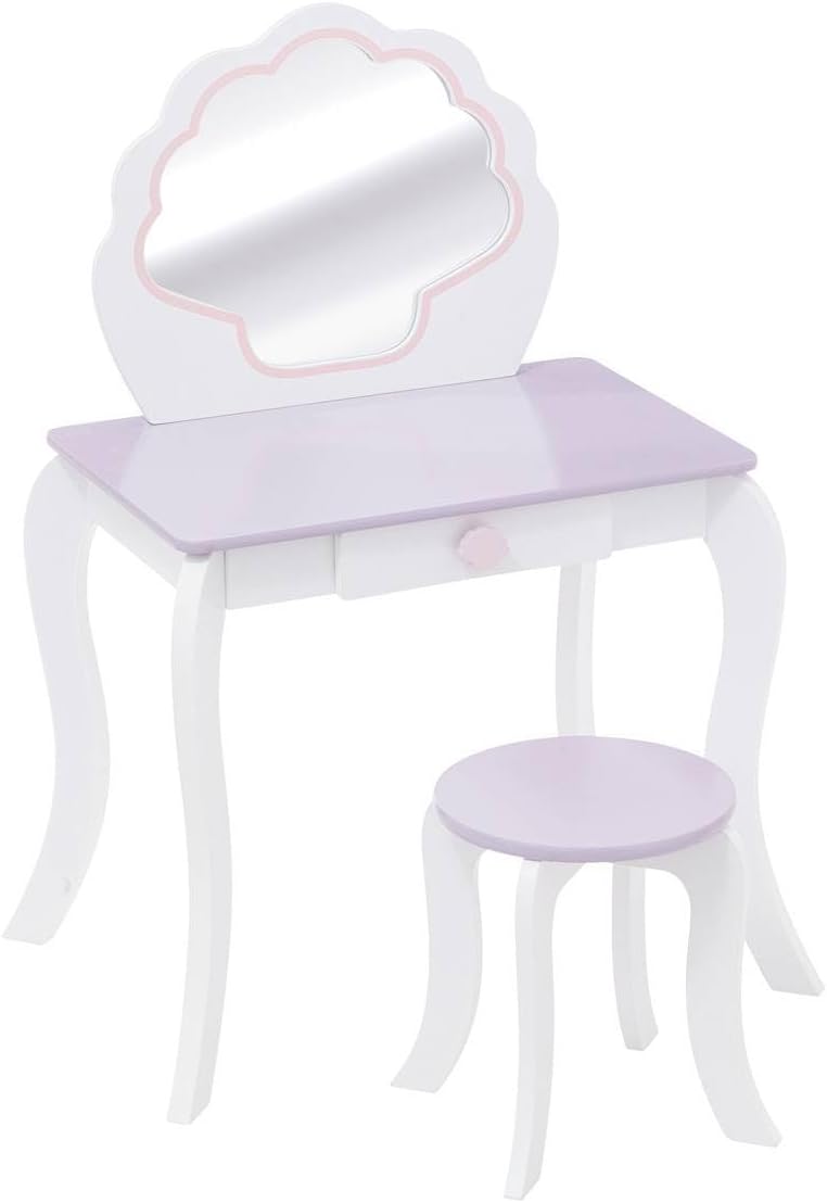 Deze mooie kaptafel met kruk is een ware prinsessen tafel. Elegant, mooi en gemaakt van MDF. Lade aan de voorkant om alle 'make up' of sieraden in te bewaren en spiegel. Staat deze binnenkort bij je kleine meid op de kamer?