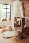 Met de piekstok voor klamboe hang je een ledikantklamboe heel eenvoudig op zonder dat je gaten hoeft te boren in het plafond of in de muur. En je zult zien: zodra de klamboe aan de piekstok hangt is de babykamer direct sfeervol. En met een prachtige sluier wordt het ledikant ineens een knus babynestje. De piekstok is 235cm hoog en is in hoogte verstelbaar en gemaakt van ijzer. Het is verkrijgbaar in goud en in wit. De bijpassende klamboe is apart verkrijgbaar en gemakkelijk op te hangen aan het haakje. Welke kleur klamboe kies jij voor bij de piekstok?