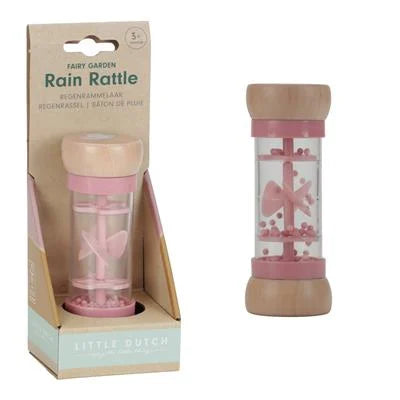 Schud en rammel! Draai de regenrammelaar om en luister naar de rustgevende druppelgeluidjes van de balletjes die van de ene naar de andere kant van de regenmaker bewegen. Het stimuleert de zintuiglijke ontwikkeling en het muzikale talent van je baby. De balletjes, vallen door kleine openingen in de buis en laten de propeller draaien, wat resulteert in een aangenaam geluid. De regenrammelaar is ontworpen voor kleine handjes en ligt lekker in de hand. De houten boven- en onderkant zijn versierd met een illustratie van een klein vosje en een paar paddenstoelen en uit de Forest Friends -collectie.