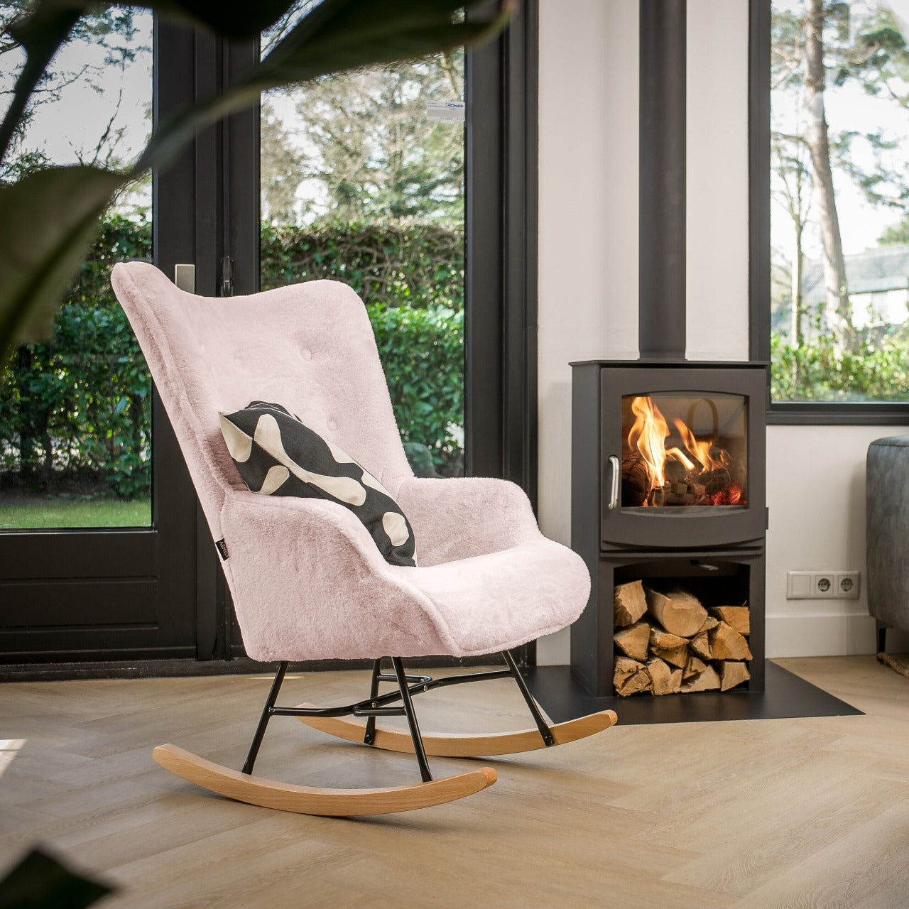 - Zachte schommelstoel met een lichtroze imitatiebont