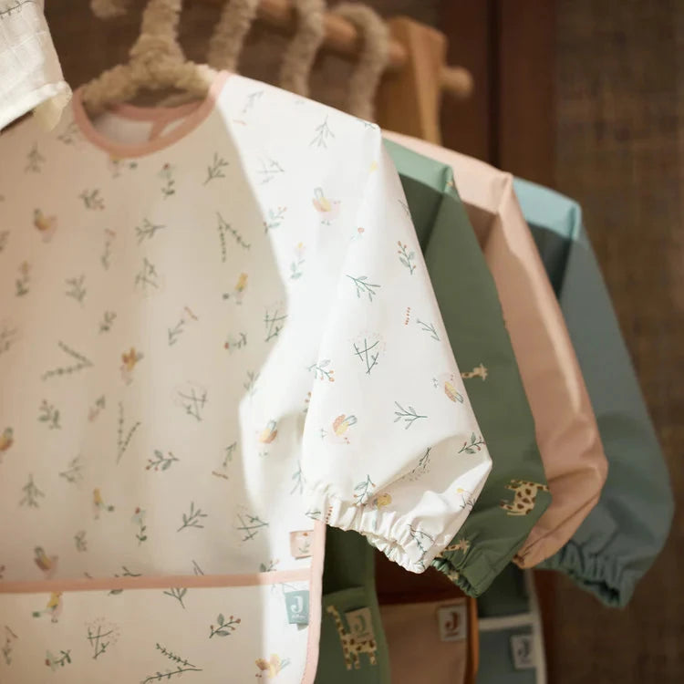 Deze slab met mouwen is geweldig. Het is een soort schortje en beschermt de kleertjes van jouw baby of dreumes extra goed door die mouwtjes.