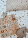 Ze zijn makkelijk op te vouwen en mee te nemen voor visite, weekendjes weg of voor buiten. Zowel de buiten als de binnenzijde is gemaakt van gerecycled polyester. Polyester is kreukvrij, snel droog, kan makkelijk worden schoongemaakt en hoeft niet heet te worden gewassen. Het is anti allergeen en bacteriën kunnen er daarom niet in vermenigvuldigen. De polyester binnenvulling is dezelfde stof als wordt gebruikt voor het vullen van knuffels en kussens en is veilig voor kinderen. De randen worden gemaakt van biologisch katoen.