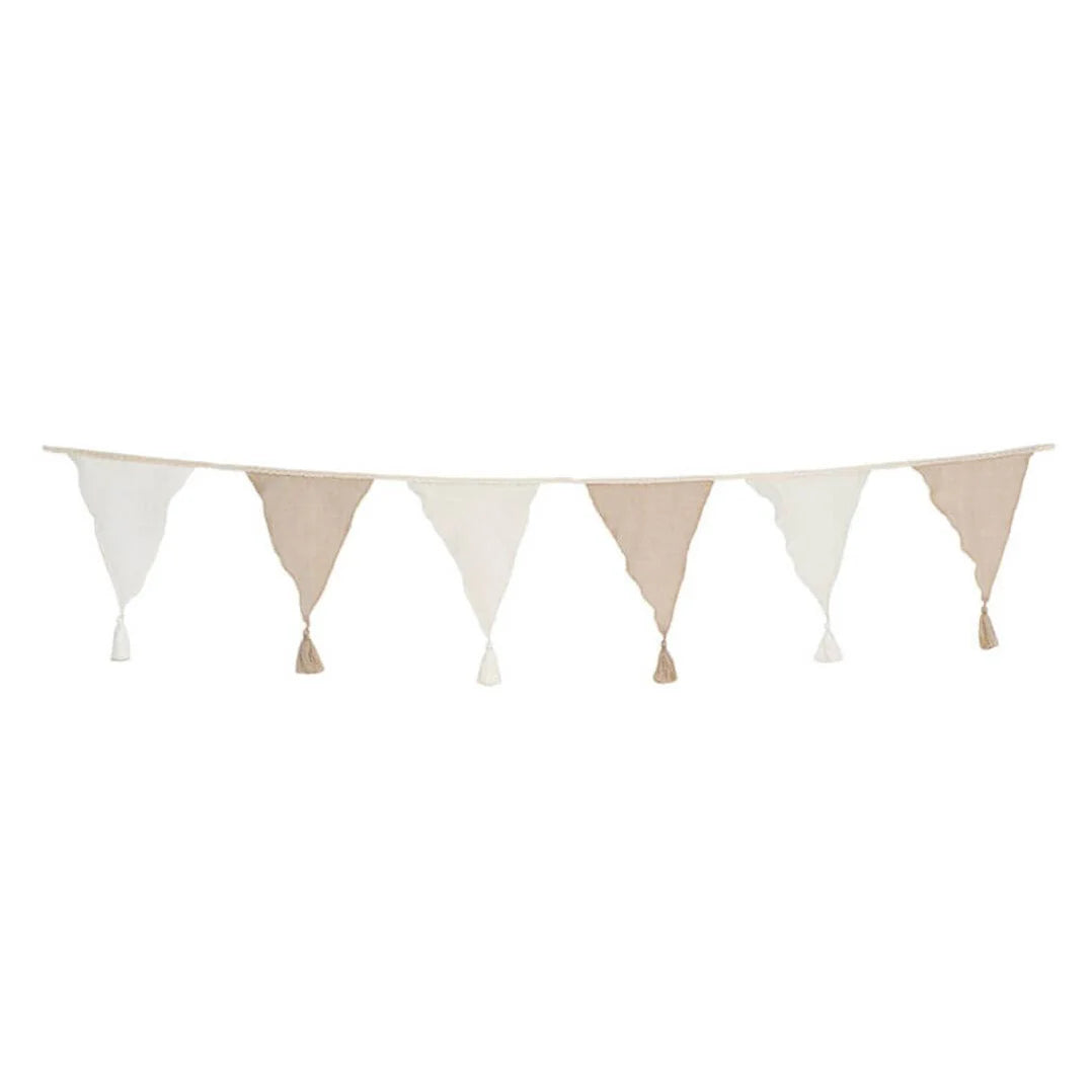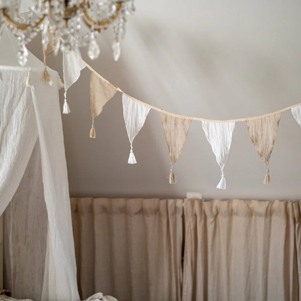 De textielslinger werkt als een leuk interieur item in de kinderkamer, hangend aan de muur, over het bed of langs een raam kozijn.