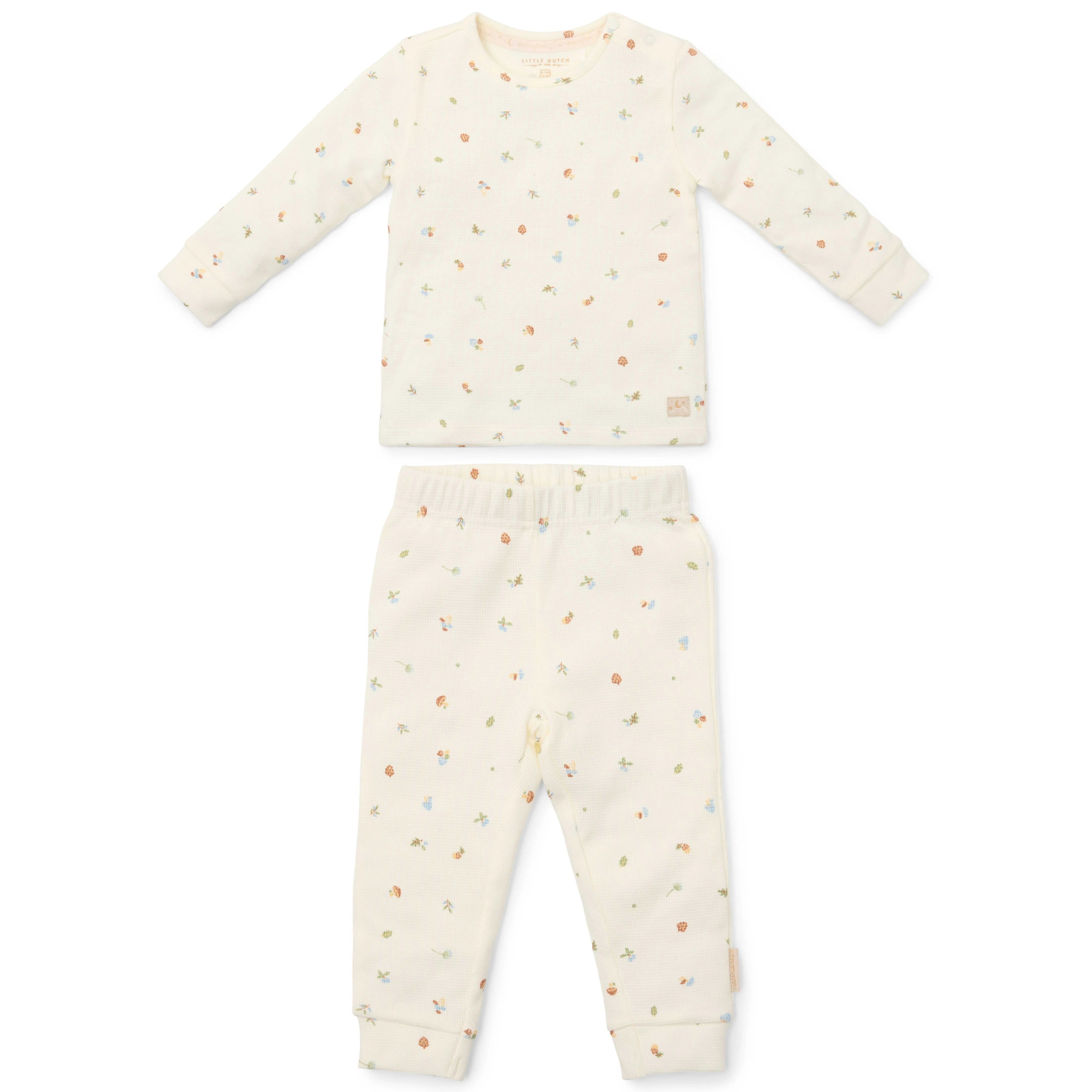 Blossom Bedtime: Kruip lekker weg in deze schattige pyjama met bloesemende charme! Gemaakt van comfortabel en zacht biologisch katoen, heeft het een fijne pointelle structuur en een schattige print van kleine roze bloemetjes. Het ontwerp is afgewerkt met verfijnd gestikt randje langs de zoom en mouwen, voor een extra vleugje elegantie. Het pyjamashirt en de broek verzekeren de mooiste dromen over bloemen en de natuur. De tweedelige pyjama past perfect bij het beddengoed met dezelfde bloemenprint. Verpakt in een mooie doos, is deze set een prachtig cadeau. Verkrijgbaar in maten 74/80, 86/92 en 98/104.