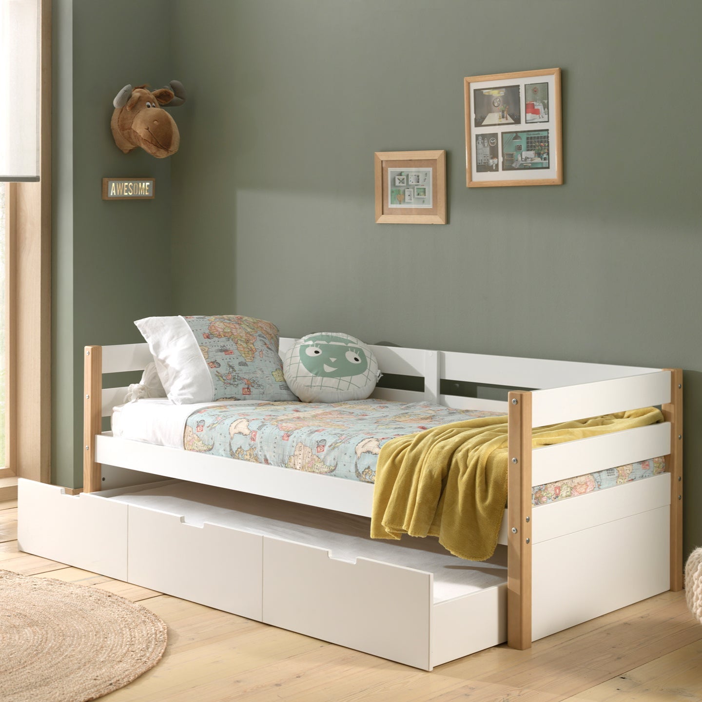 Het Margriet kajuitbed kan gebruikt worden als bed en als zetel. De warme wit en natuurtinten zorgen voor een Scandinavische look. Het rolbed kan gebruikt worden als slaapruimte voor een vriend(in) of als extra opbergruimte. Het minimalistische en stijlvolle design maakt dat het in elk interieur past.