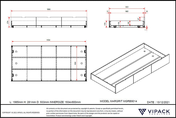 Margriet Kajuitbed inclusief lade 90x200 - Natuur/Wit