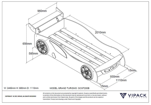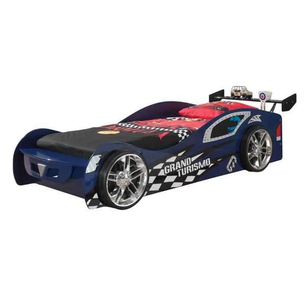 Grand Turismo autobed is vervaardigd uit blauw gelakte MDF. Het bed is inclusief lattenbodem en is geschikt voor een matras van 90x200cm.