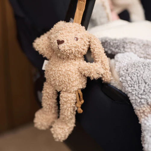 Ik ben super zacht, super schattig en té leuk om te laten liggen! Friemel aan mijn oortjes en ontdek een knisperend geluid of ontdek alle labeltjes en touwtjes die aan mijn lijfje vastzitten. Papa en mama kunnen mij gemakkelijk aan de kinderwagen, autostoel of box hangen zodat jij er fijn mee kunt spelen. Dit leuke bouclé konijn is erg leuk om te krijgen en nog leuker om te geven.