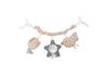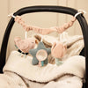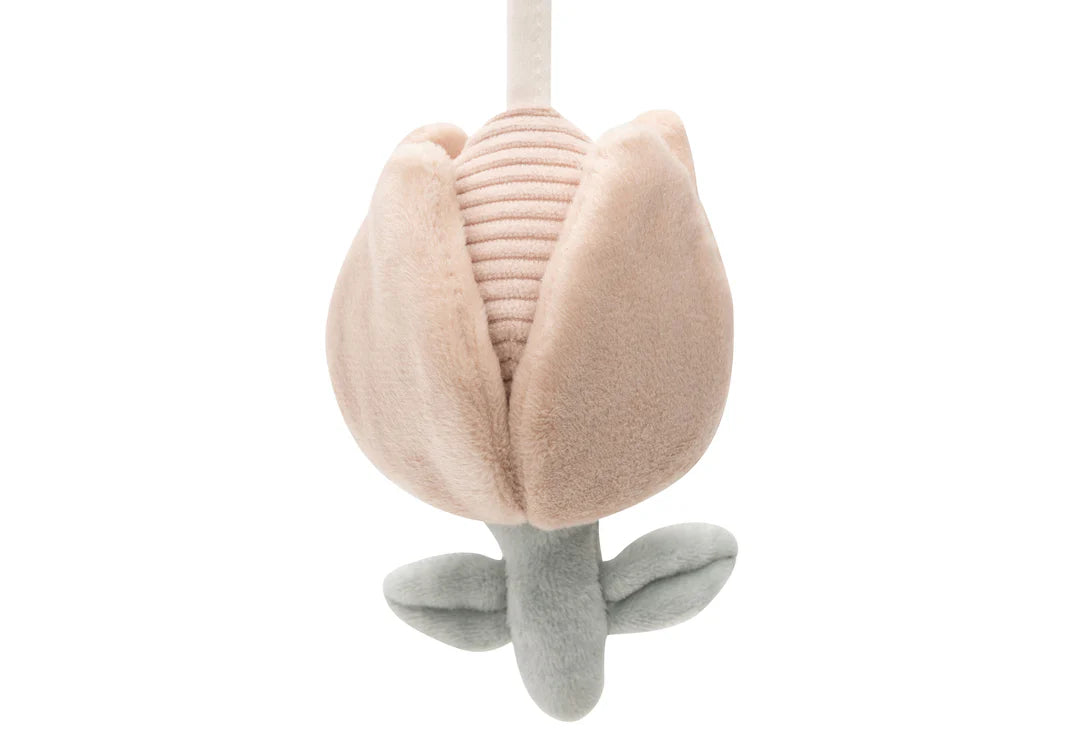 Deze schattige wagenspanner is een echte blikvanger voor in de kinderwagen en zorgt voor urenlang speelplezier! De drie lieve hangertjes – een tulp, een schattig vogeltje en een vogelhuisje met spiegel – maken het onderweg extra leuk voor je kleintje. De knispergeluidjes en vrolijke belletjes maken de wagenspanner helemaal compleet.